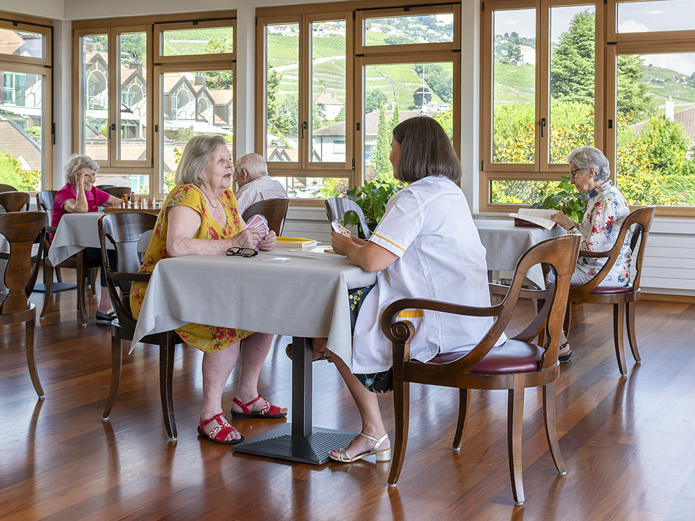 Nos résidents y sont accueillis pour d’agréables moments emplis de traditions suisses.