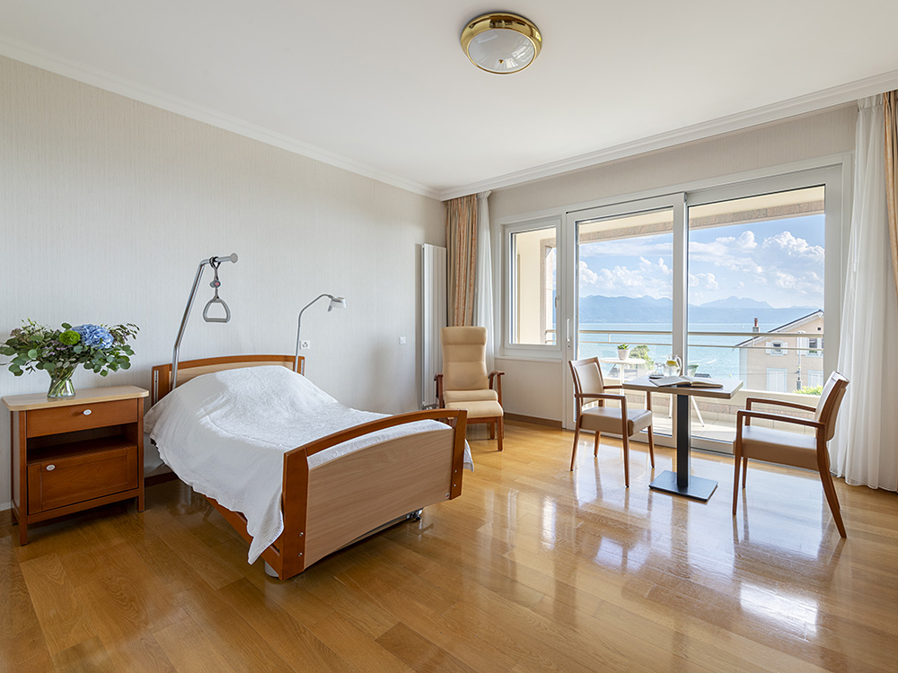 Doté de 24 lits repartis en chambres individuelles et doubles, le Bellevue s’élève face au lac et aux magnifiques jardins du domaine, offrant ainsi à nos résidents un havre de paix et de bien-être.